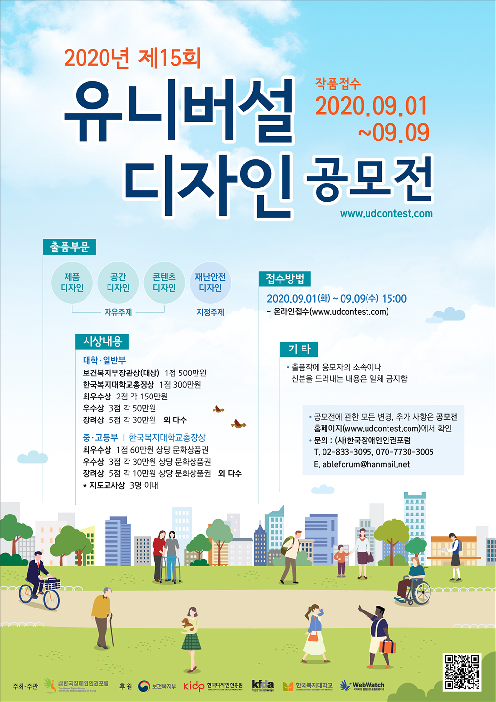 2020년 제15회 유니버설디자인 공모전 포스터입니다.